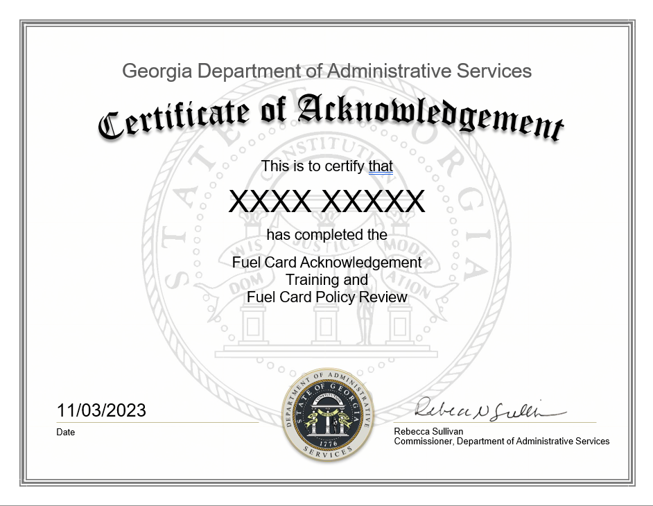 Once the acknowledgement has been completed, drivers should email the completion certificate to [email protected] along with their 810/811 number or call 706-542-7526. A member of the UGA fuel management team will respond with an activated PIN. PIN’s unused for twelve months will be deactivated.